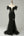 Abito da cerimonia a sirena nera con spalle scoperte con piume