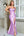 Abito lungo fucsia a sirena con spalle scoperte e paillettes