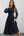 Navy A Line Maniche Removibili Plettato Abito Da Cerimonia Lungo