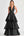 Nero A-Line Spaghetti Straps Fiori Increspature Tulle Abito lungo da cerimonia con fessura