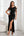Sparkly Beading nero scollo quadrato Prom Dress con fessura