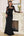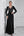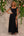 Nero floreale A-Line scollo a V mezze maniche lungo abito da ballo con cintura