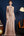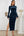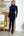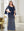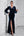 Abito da ballo in velluto a maniche lunghe blu scuro con fessura