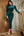Abito da ballo lungo a maniche lunghe a sirena verde scuro con fessura
