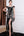 Stampa nera arruffato corsetto tè lunghezza abito da ballo con fessura