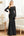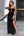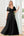 Abito da cerimonia lungo nero con spalline sottili in tulle linea A aperto sul retro
