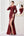Abito da cerimonia lungo a sirena monospalla Borgogna con volant