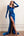 Abito da ballo lungo con fodero in paillettes blu royal con spalle scoperte