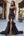 Chic nero cinghie aderente fessura volant lungo abito da ballo con una sciarpa