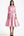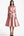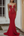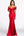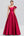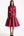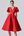 Abito formale in raso rosso a trapezio con maniche a sbuffo