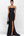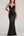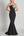 Abito lungo formale scintillante nero sirena avvolgente con scollo a V in rilievo