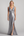 Abito lungo formale a sirena con scollo a V in argento con fessura