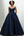 Abito Lungo Formale Nero Blu Plissettato Tulle Con Scollo A V