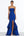 Sirena senza spalline Royal Blue Satin Abito lungo formale con fessura