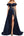 A Line Navy Spaghetti Straps Abito Formale Lungo con Spacco