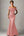 Sirena rosa con scollo a V maniche arruffate abito lungo da ballo in raso