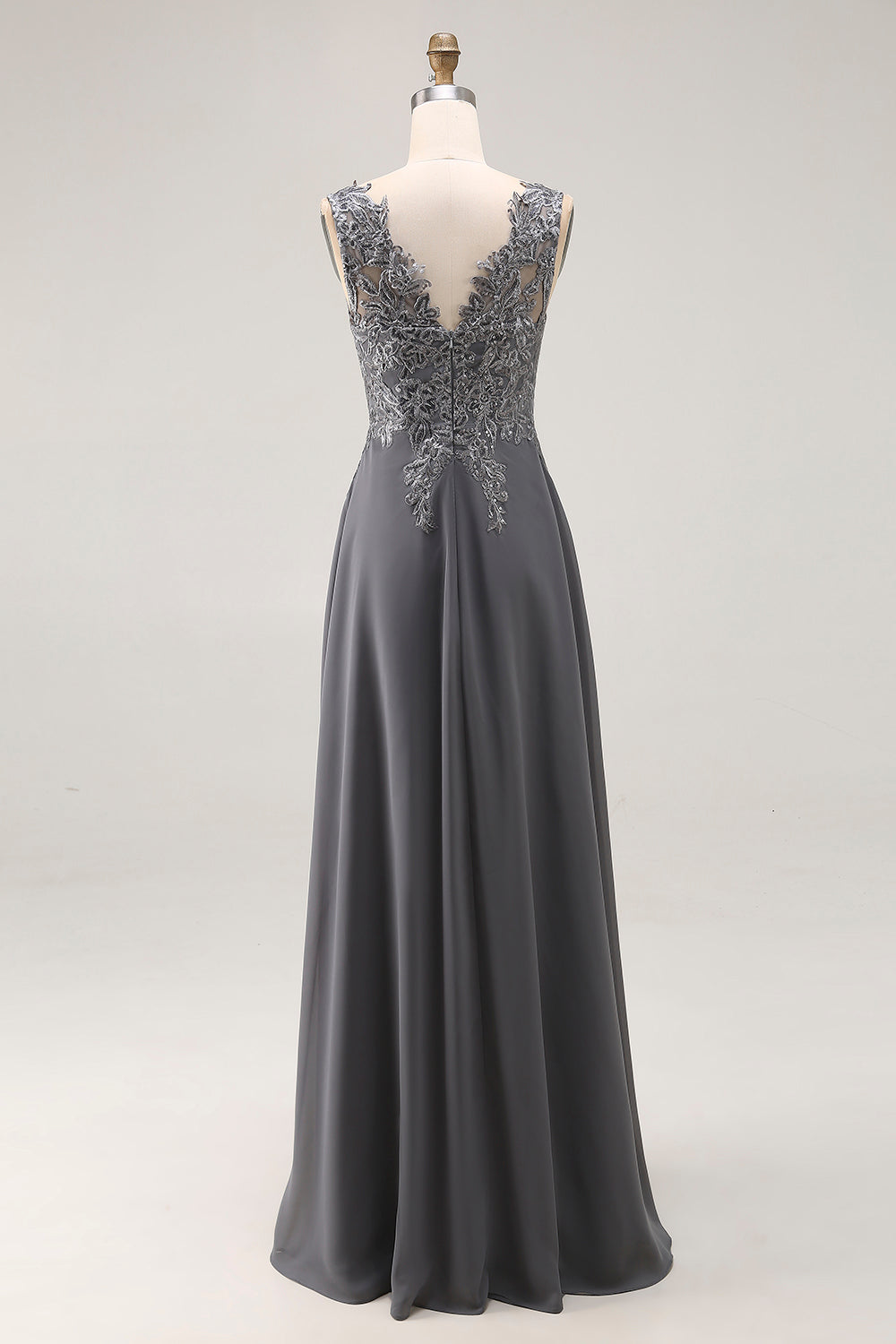 Antracite A Line V-Neck Lace Abito lungo da sposa con applique