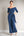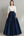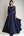 Tuta Blu Marino Appliques Chiffon Maniche Lunghe Scollo Quadrato Madre della Sposa Set