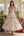 Abito midi in chiffon stampato salvia polverosa con spalla e fessura