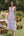 Spalline stampate lilla un abito midi in linea con volant