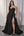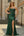 Abito da cerimonia lungo sirena verde scuro con paillettes e taglia scoperta