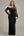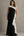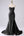 Abito a cravatta nera lunga con spalle e spalle più con un fiore 3D