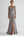 Scintillante abito formale grigio con scollo a V e maniche corte