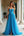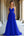 Un abito da cerimonia lungo blu con scollo a V con schiena aperta
