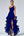 Una linea scollo quadrato azzurro a più livelli floreale abito lungo da ballo con volant