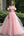 Abito da ballo senza spalline in tulle rosa con applicazioni