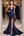 Abito da gala con scollo a V increspato a sirena blu navy con spacco