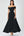 Off the spalla raso fessura sirena abito cravatta nera con fiocco rosa