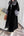 Maxi cappotto da donna in velluto con collo a risvolto nero