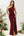 Abito da damigella d'onore lungo senza schienale bordeaux con spalline a sirena