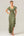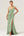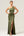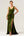 Lime guaina profondo scollo a V schiena scoperta abito da damigella d'onore con fessura a balze