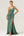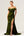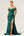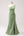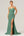 Abito da damigella d'onore in raso lungo con collo quadrato a sirena verde con pizzo ciglia