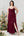 Abito da damigella d'onore lungo bordeaux con linea ad A e allacciatura sul retro con incrocio sul retro