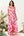 Abito da damigella d'onore lungo increspato floreale rosa con fessura