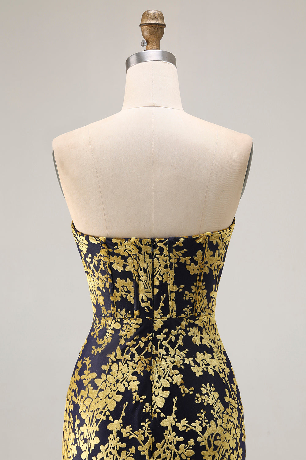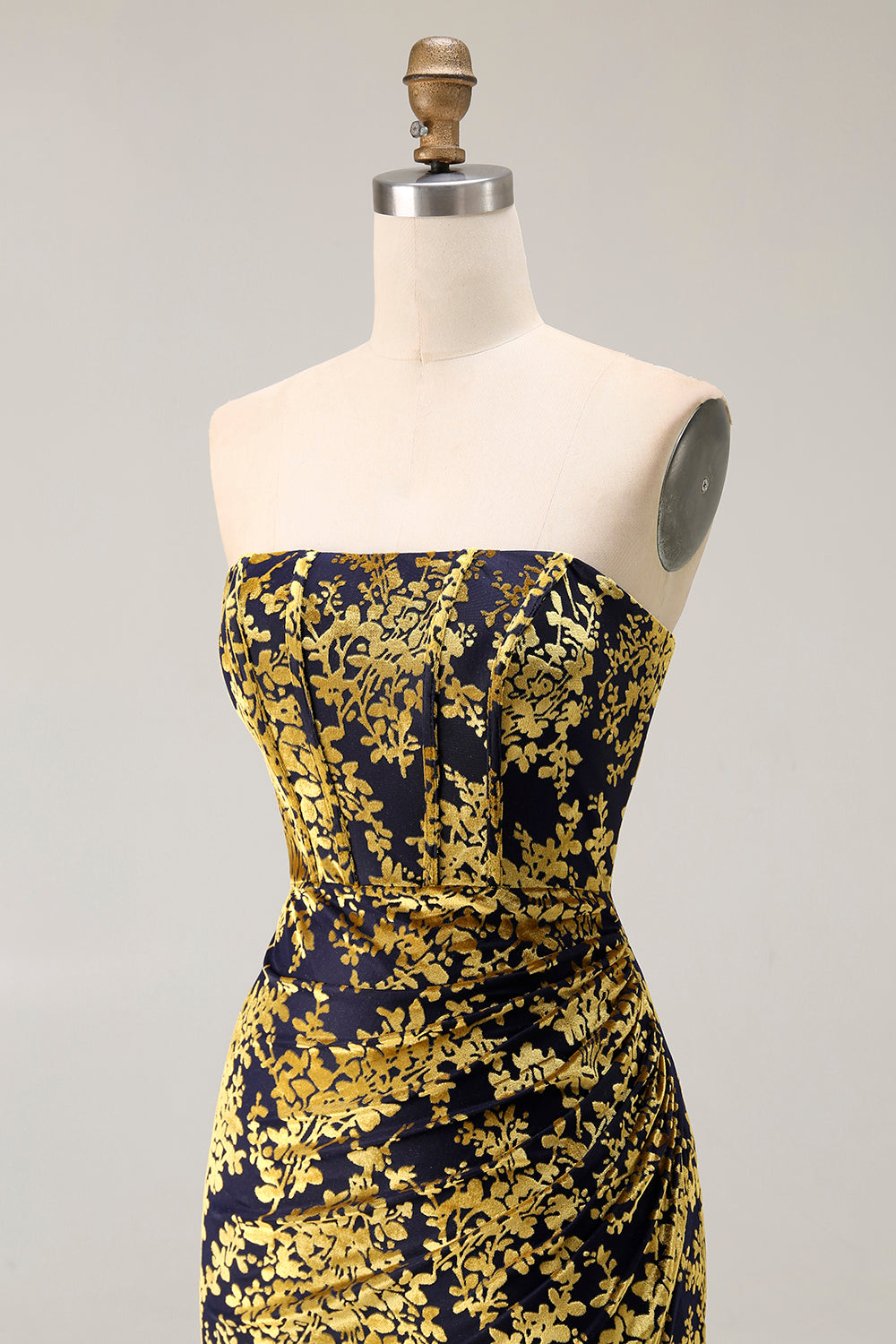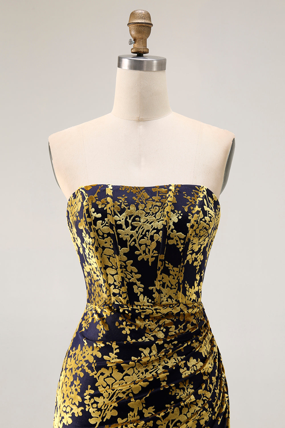 Borgogna corsetto senza spalline Burnout velluto abito da damigella d'onore con fessura