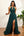 Abito da ospite di nozze con spacco spaghetti verde scuro