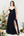 Elegante A Line senza spalline paillettes nere abito da ballo lungo con volant