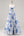 Abito da sera lungo blu a balze a strati con motivo floreale e spacco