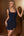 Sparkly blu scuro Square Neck Aderente Mini Abito Da Laurea con fessura
