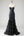 Sirena nera con spalline a perline, fiocco laterale con strass, abito da ballo lungo con fessura