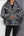 Cappotto femminile con colletto nero in finta pelliccia a righe