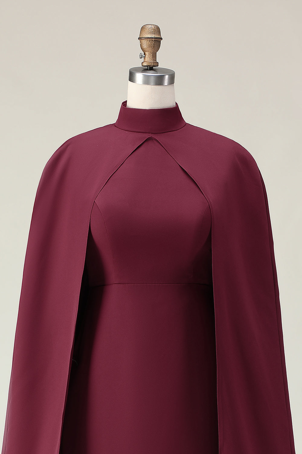 Abito formale midi a scollo alto con guaina borgogna e mantello