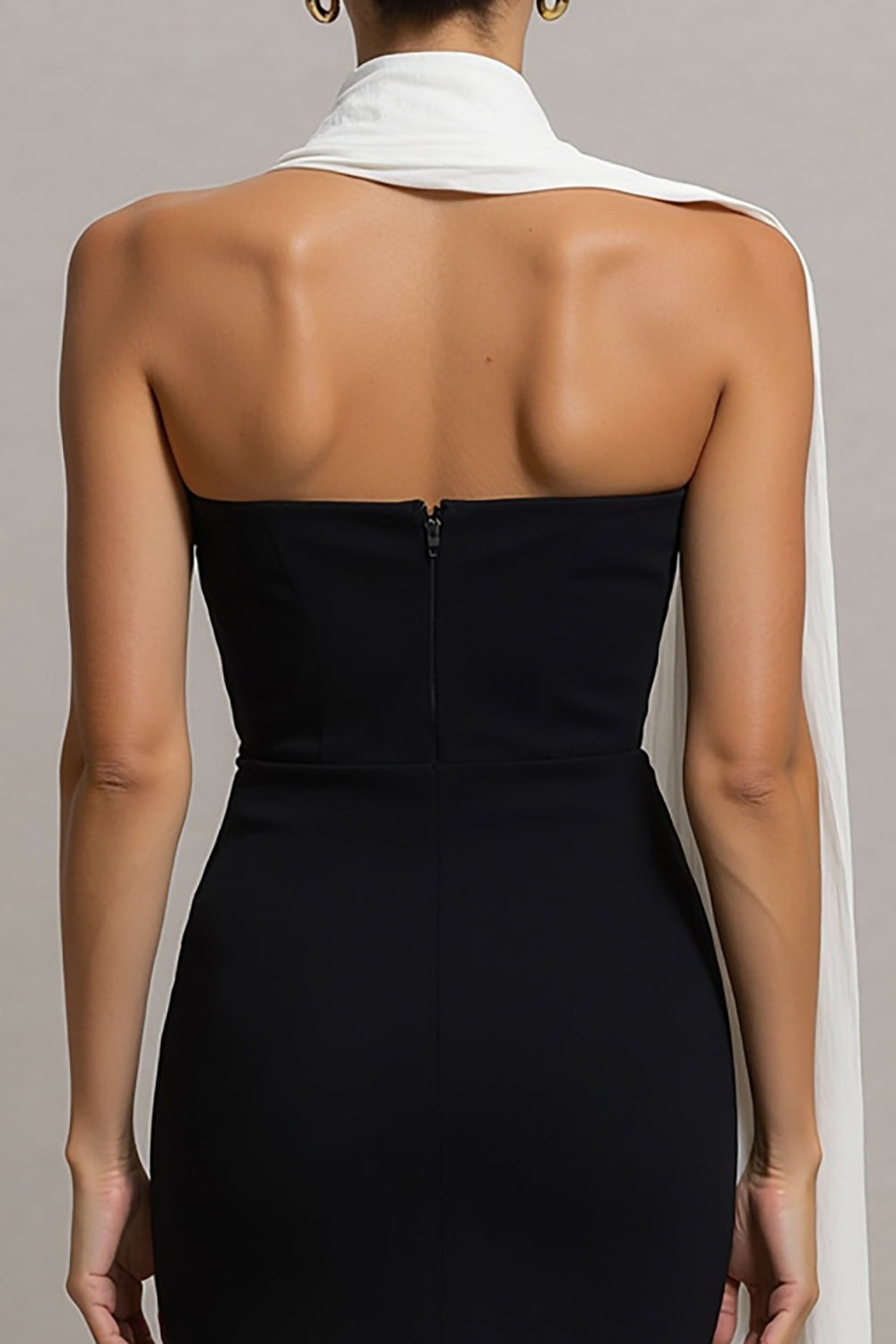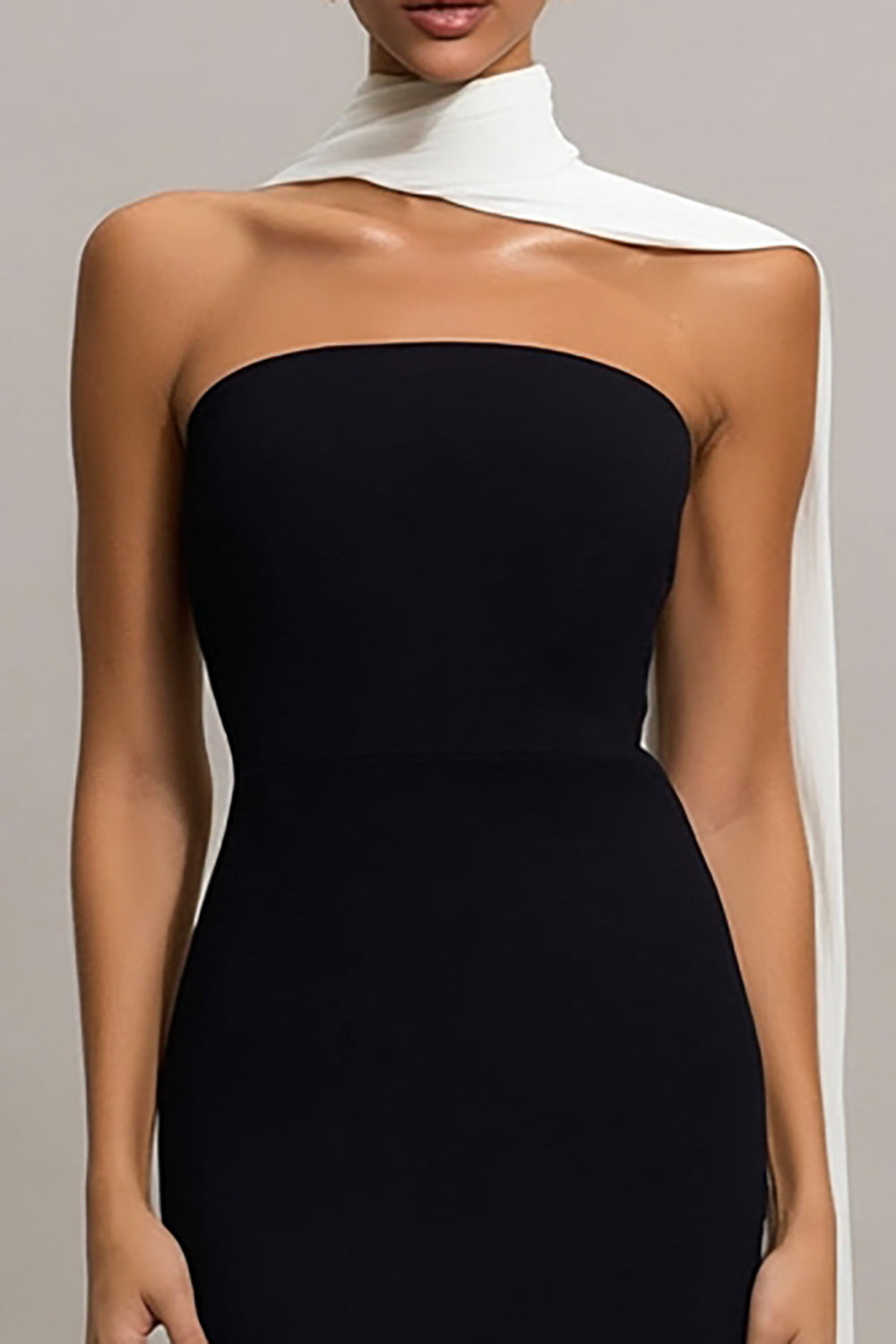 Abito nero senza spalline con abito elegante lungo e sciarpa al collo