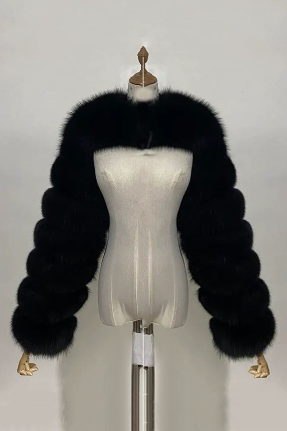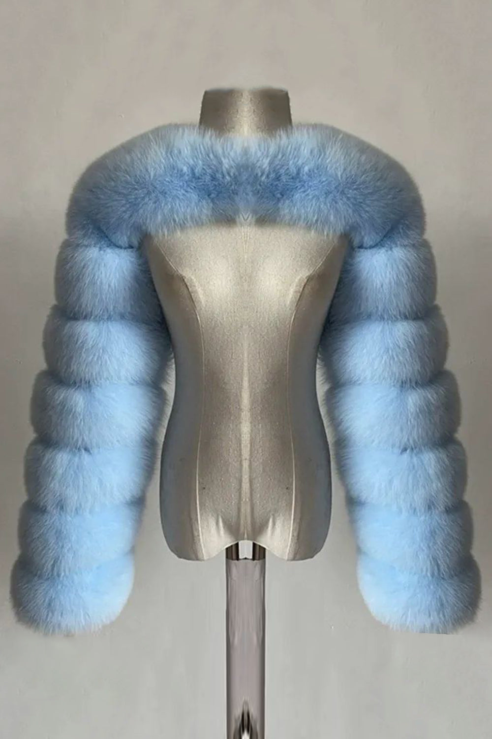Cappotto da donna sciallato invernale in pelliccia finta di volpe grigio acciaio