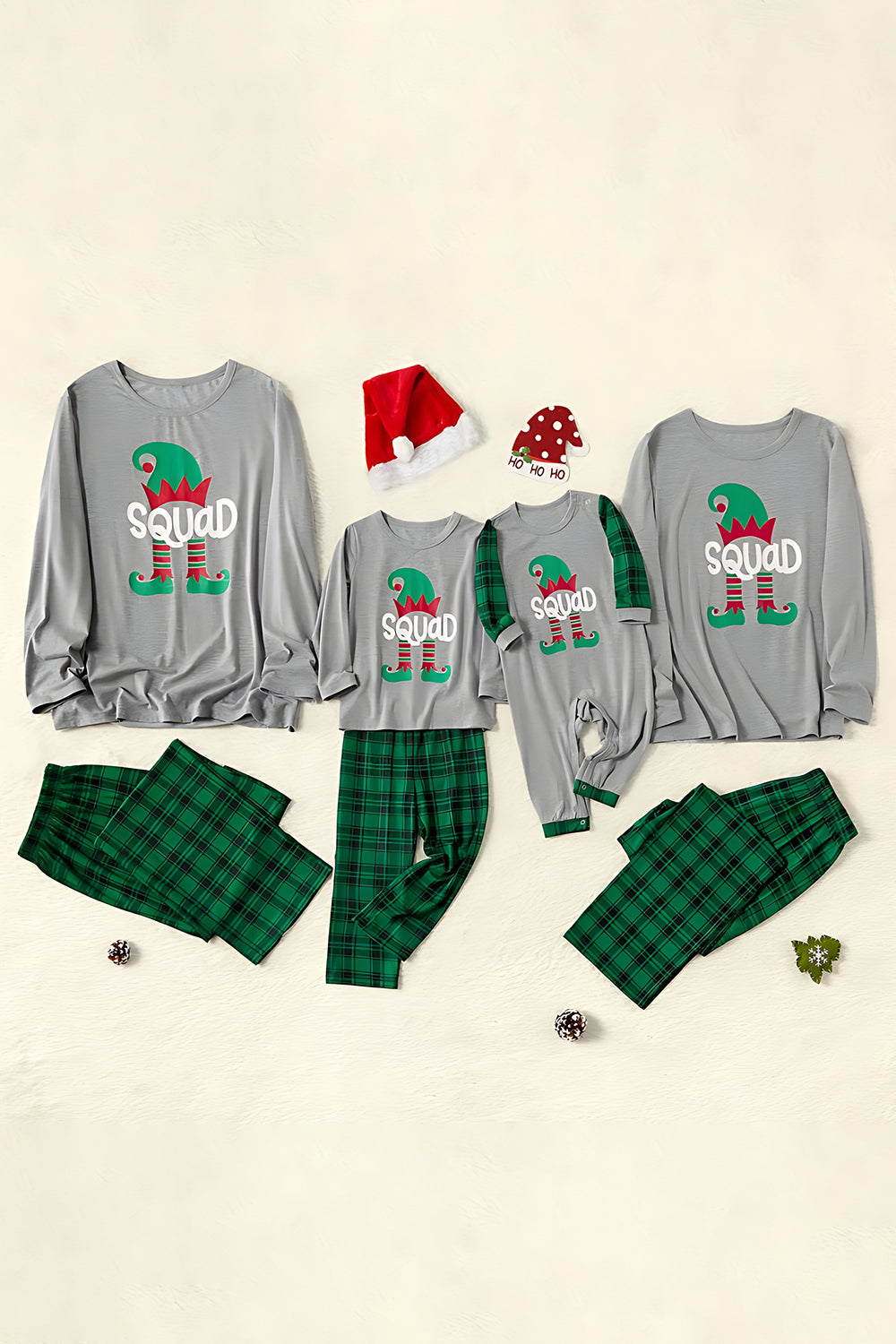Grigio Verde Plaid Stampa Natale Famiglia Coordinato pajama Set
