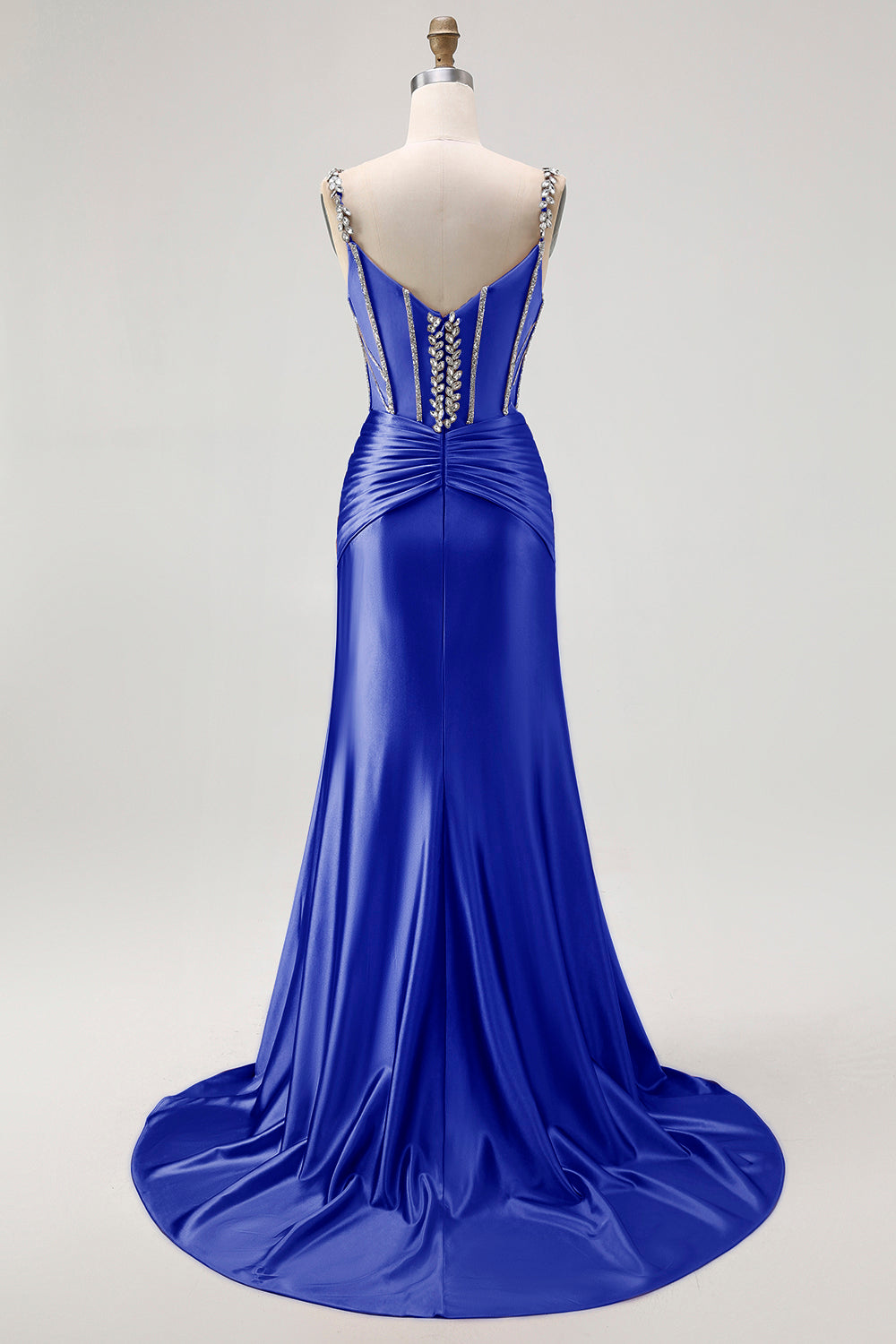 Vestito da ballo lungo con spalline a spalline in corsetto con blush e strass
